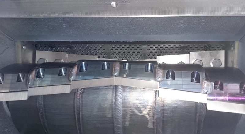 As the material enters the cutting chamber, it is caught by the rotating blades and subjected to cutting, shearing, and impact forces.