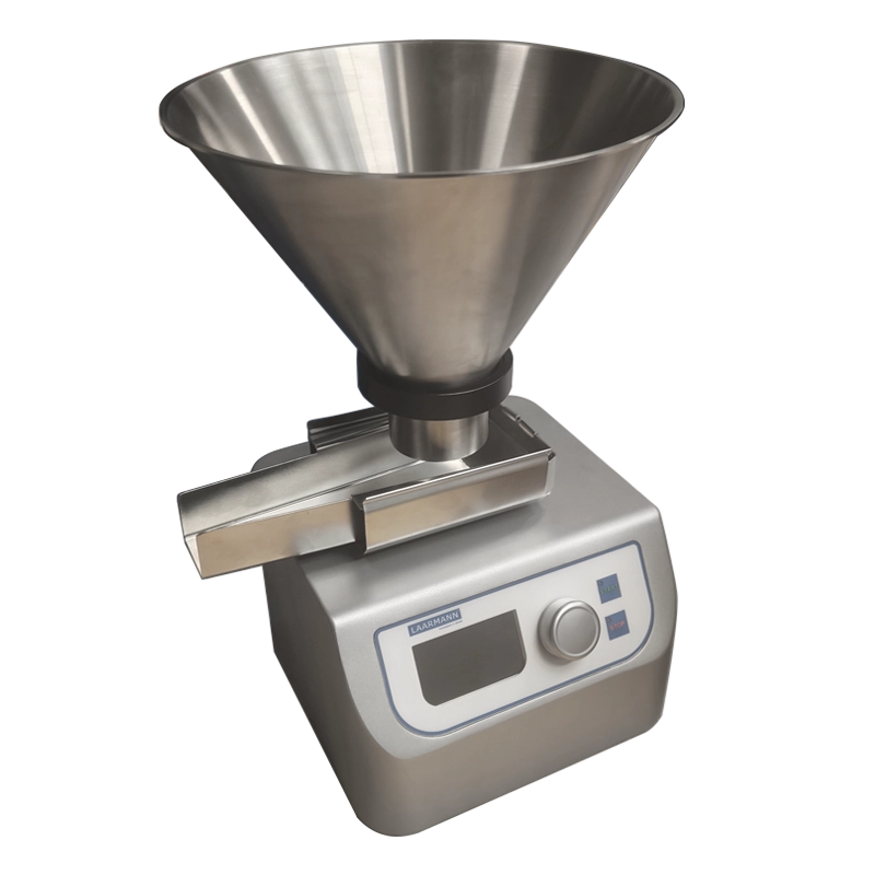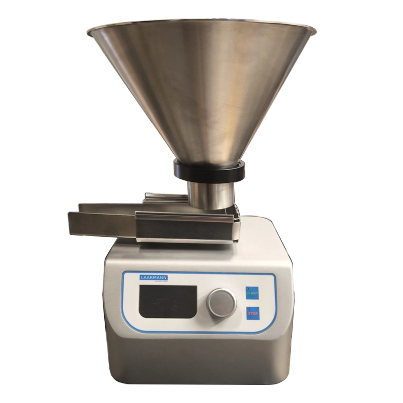 The feeder ensures uniform material flow, preventing clumping or uneven feeding, which is essential for accurate testing and analysis in the lab.