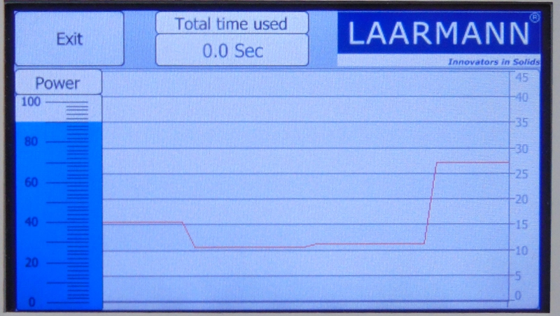 Up to 10 distinct programs can be configured, allowing for precise adjustment of pressure in relation to time. Each program consists of 1 to 6 steps, where both the pressure and duration can be customized for each step. The optimal pressure for each material varies and must be determined through practical experience.