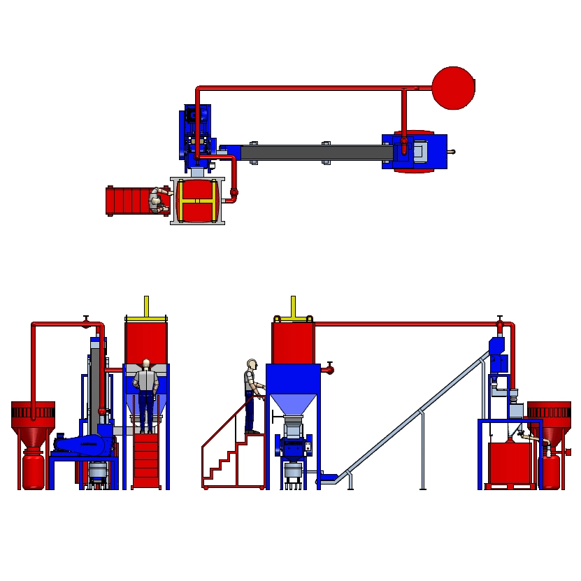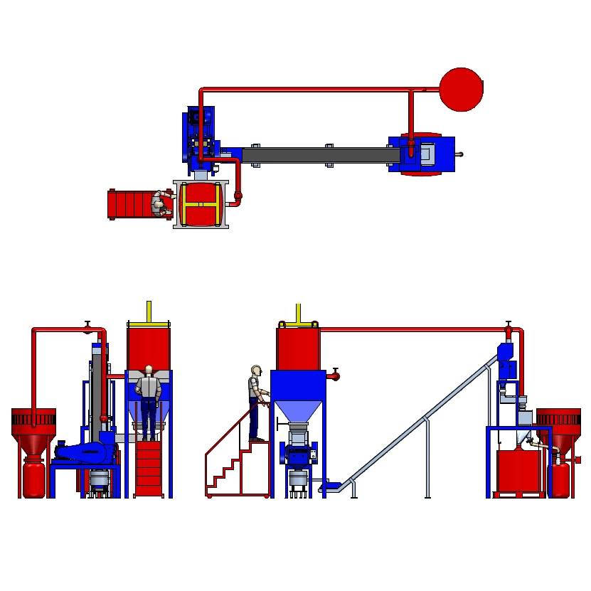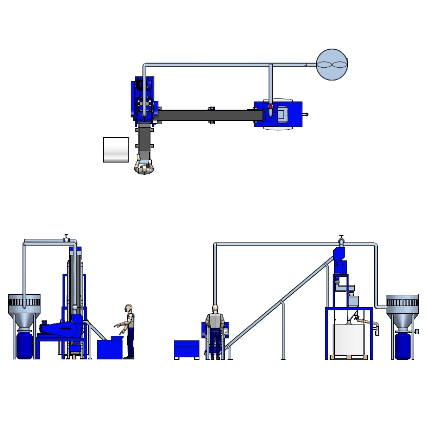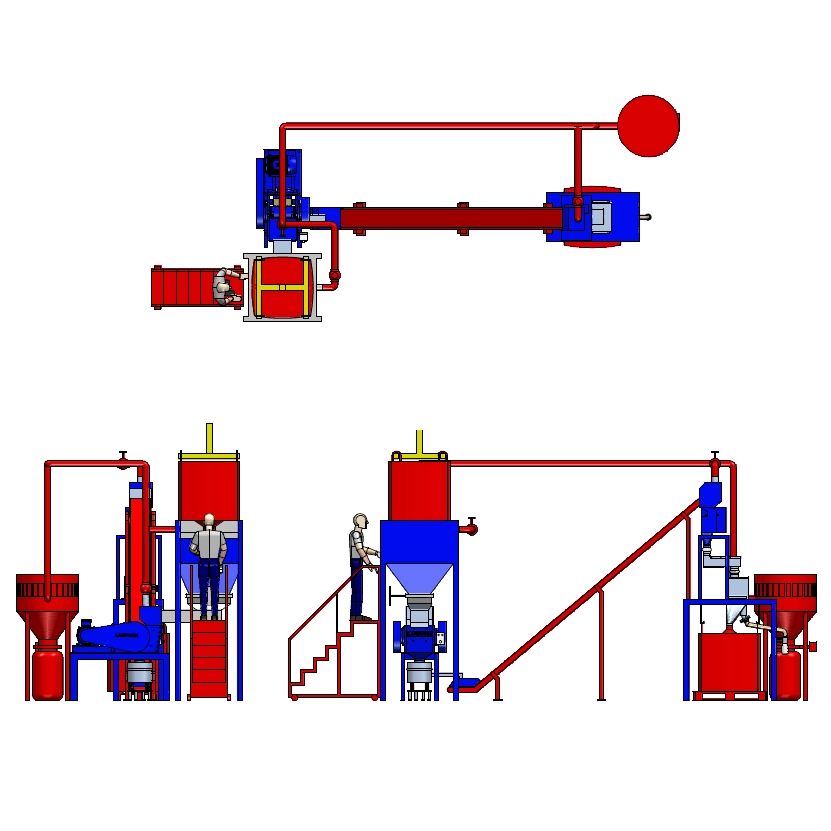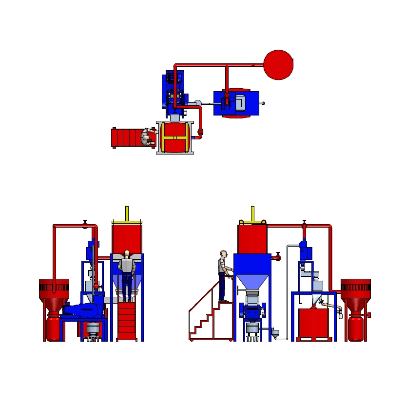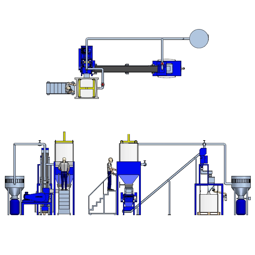 How it worksThe project is presented as a series of six alternative set-up drawings for a gold refinery plant. Each drawing combines key process components such as the LMC400 Crusher, sample divider, hammer mill, big bag system and sieve machine into a complete plant concept. By arranging these machines in different ways, the layouts show how crushing, sample handling and screening can be integrated into one refinery-related workflow. This gives customers a clearer view of possible system configurations before a final plant design is selected.