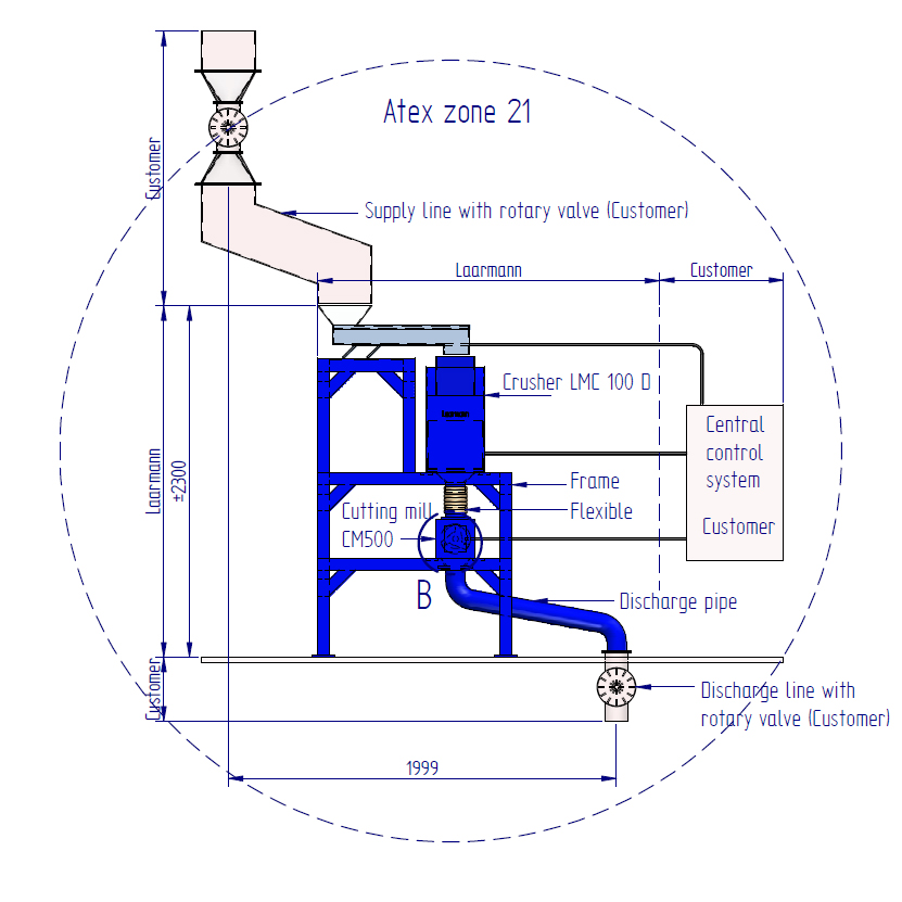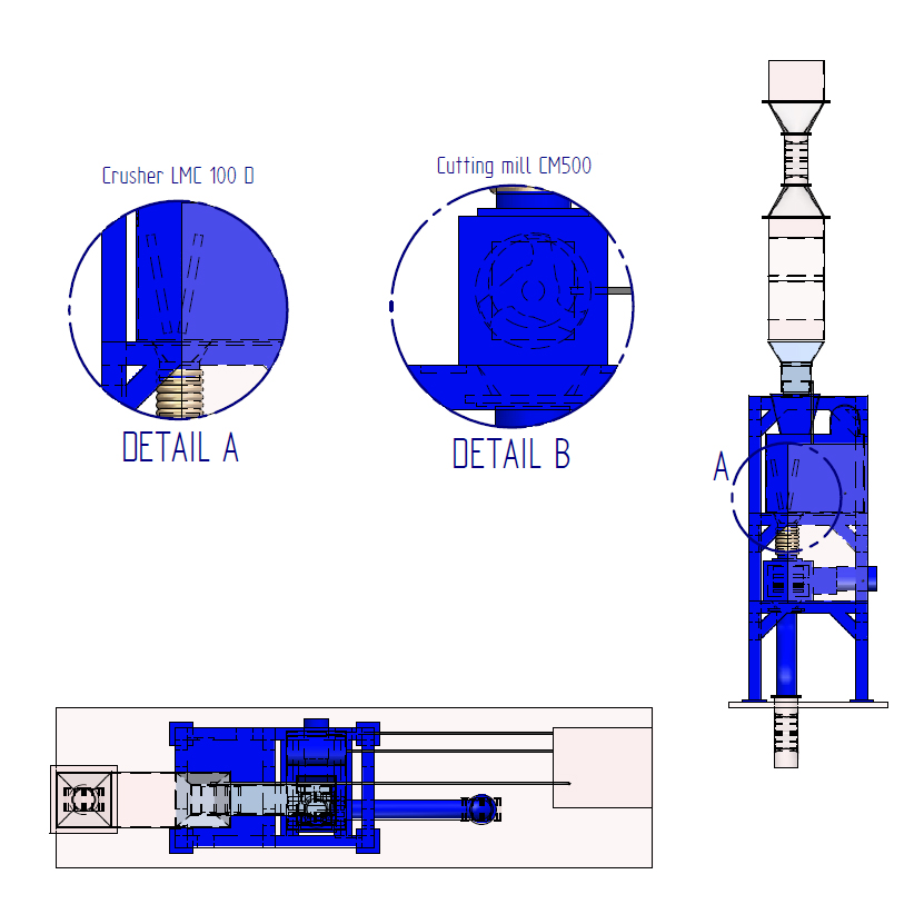 Inline situation with a LMC100D Jaw Crusher and a CM500 Cutting Mill for milling cocoa beans in the Netherlands.