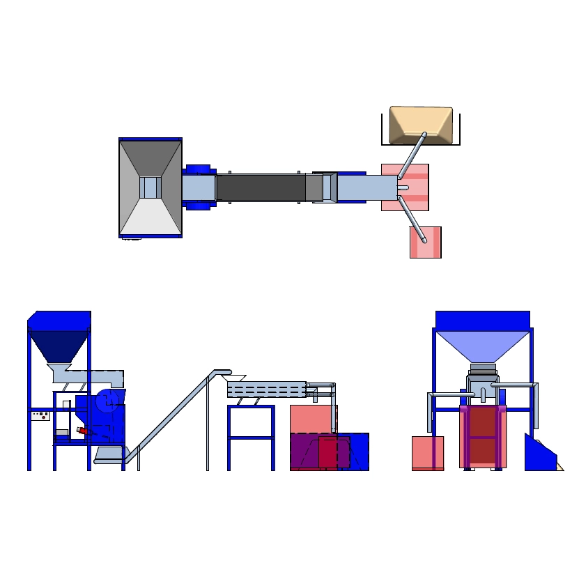 This custom LAARMANN installation is designed for the processing of recyclable waste material in a controlled and repeatable workflow. The system combines feeding, crushing, conveying and material distribution in one integrated plant concept.