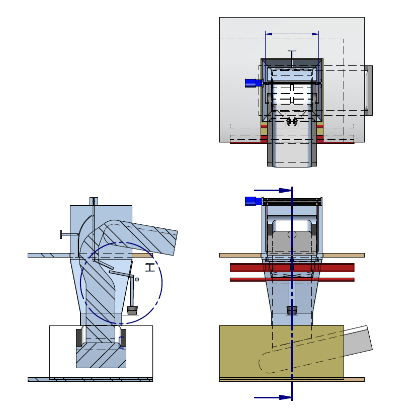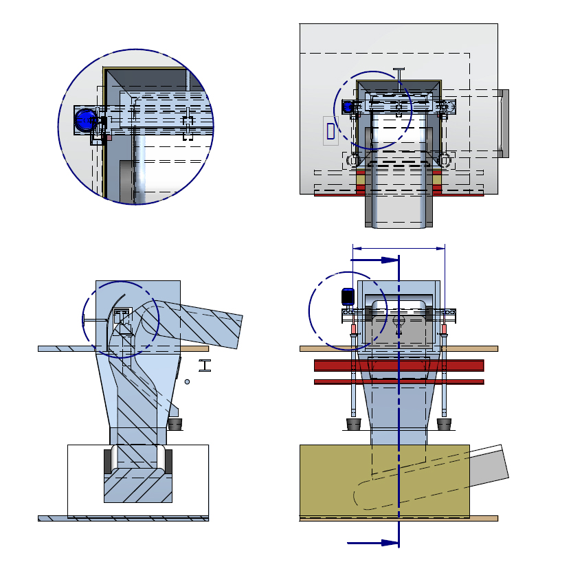 Four different concept drawing for a solid salt sampling solution for a company in the Netherlands.